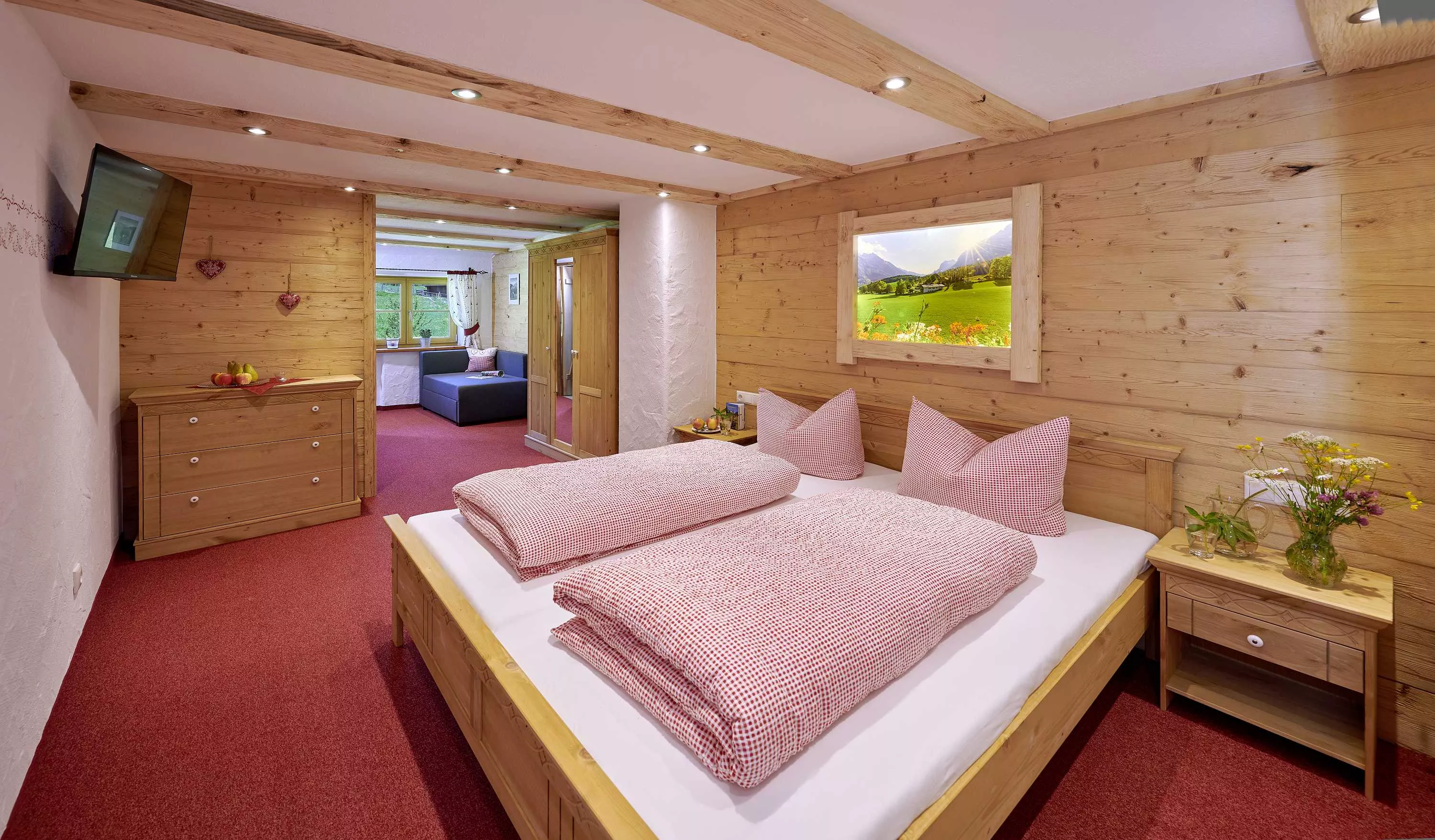 • Gemütliches Schlafzimmer mit Doppelbett sowie zusätzlichem Schlafsofa für flexible Belegung