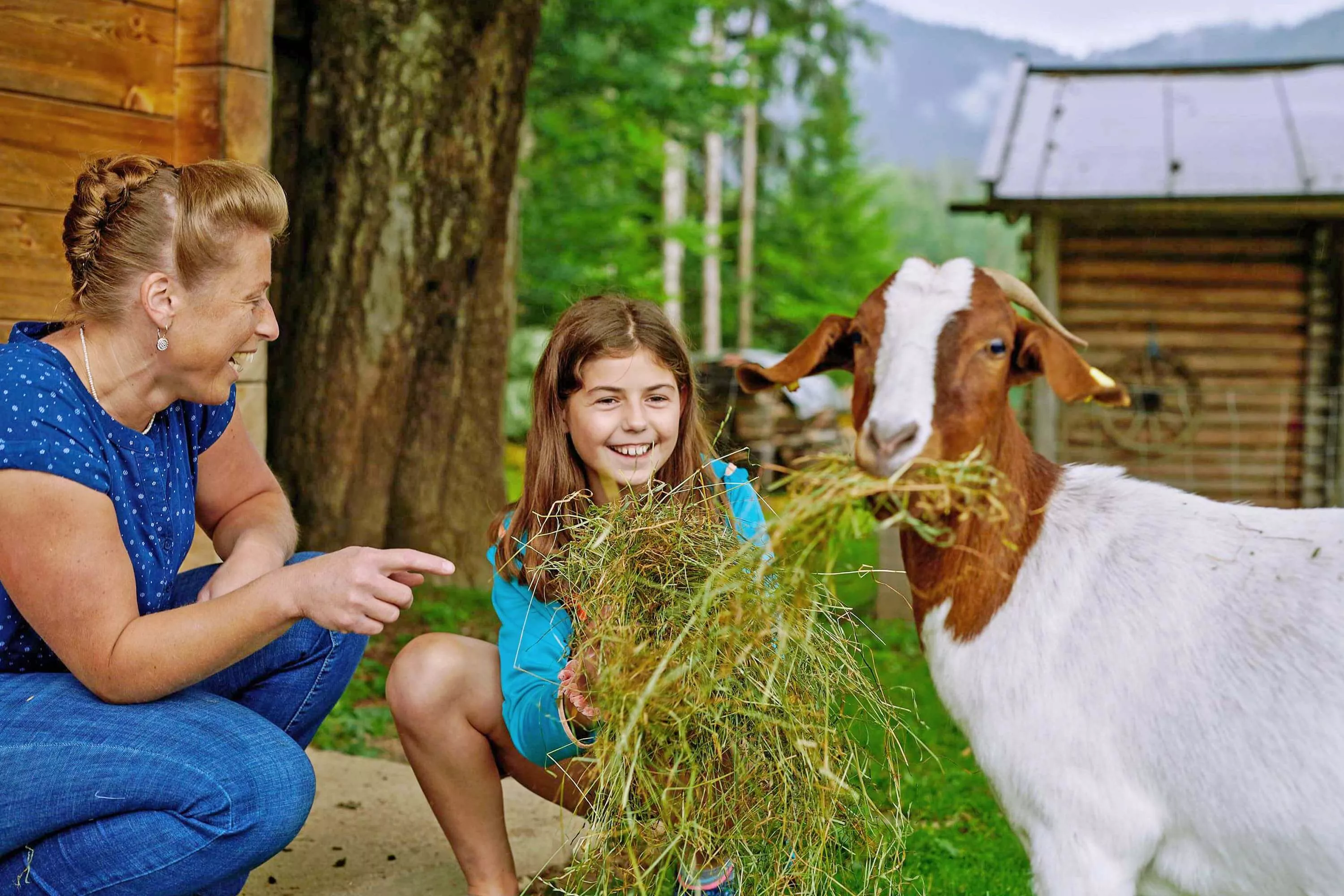 Mit den Ziegen, Hühnern und Katzen und auch mit den Kühen um den Hof in der umliegenden Berglandschaft erfahren Sie Landwirtschaft pur. Hier lassen sich Bauernhoftiere hautnah erleben und kennen lernen.