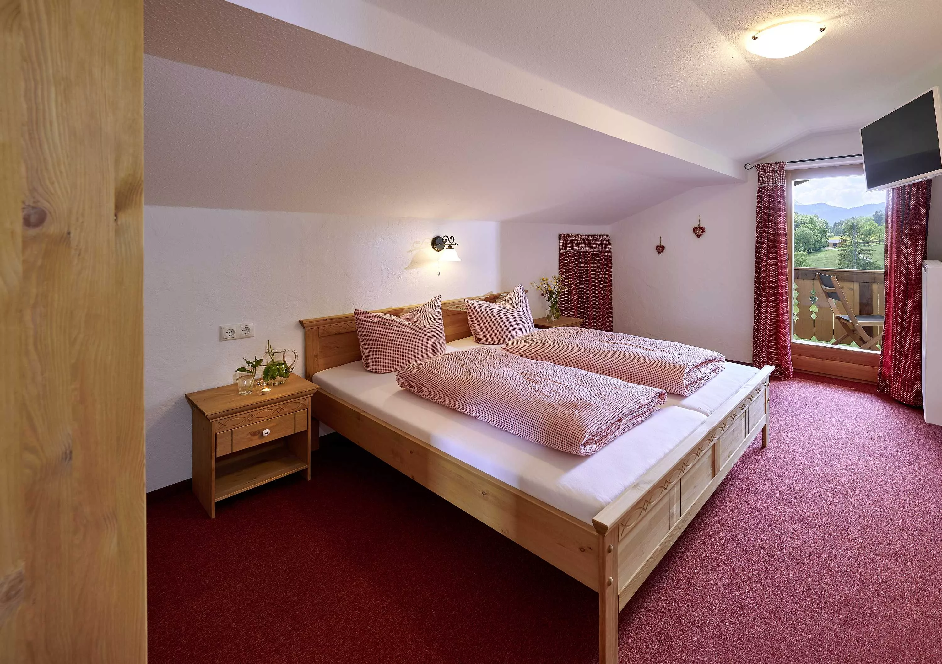 Unsere Ferienwohnung Hochkalter im 2. Stock Dachgeschoss im Nebengebäude ist ideal für Paare die gerne zwei getrennte Schlafzimmer wünschen oder eine Kleine Familie oder auch einfach wenn Freunde zusammen verreisen wollen.
